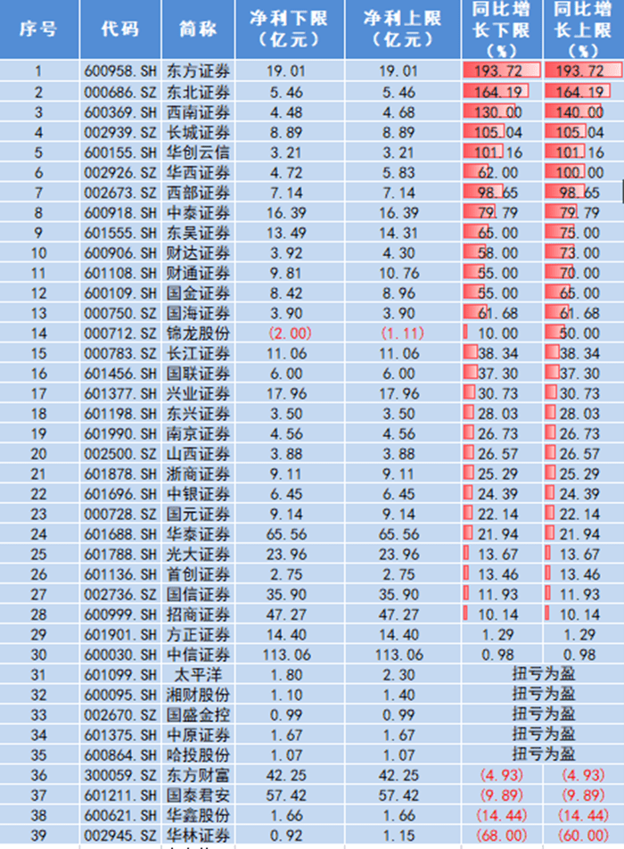 随着中报季拉开帷幕,证券指数ETF(560090)标的指数成份股中,已有39家上市证券公司发布半年报或业绩预报,几乎全部实现较大幅度业绩增长!