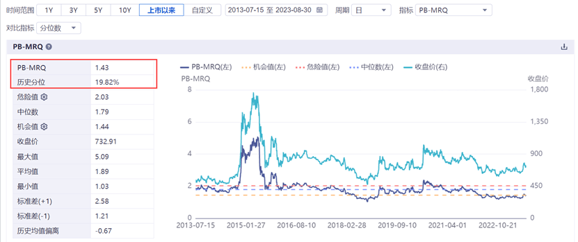 由于板块前期快速上涨,证券板块估值确实有一定的抬升。截至8月29日,证券指数ETF(560090)标的指数市净率(PB)为1.43倍,处于上市以来19.82%的百分点,依然处于历史底部位置。与此同时,截至二季度基金重仓持股比例仅为0.26%,持仓比例极低,板块配置优势凸显。