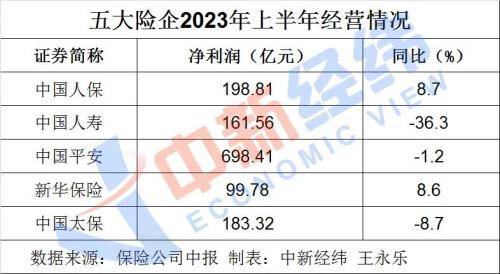具体来看,上半年五大险企净利润表现有所分化,呈“两增三降”格局。