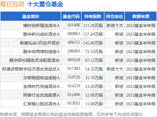 重仓每日互动的前十大公募基金请见下表: