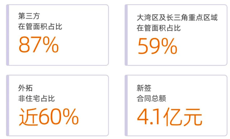 报告期内,合景悠活在管面积及合约面积分别为2.05亿平方米及2.78亿平方米,其中第三方项目的在管面积约为1.8亿平方米,占比达87%,大湾区和长三角重点区域占比达59%。