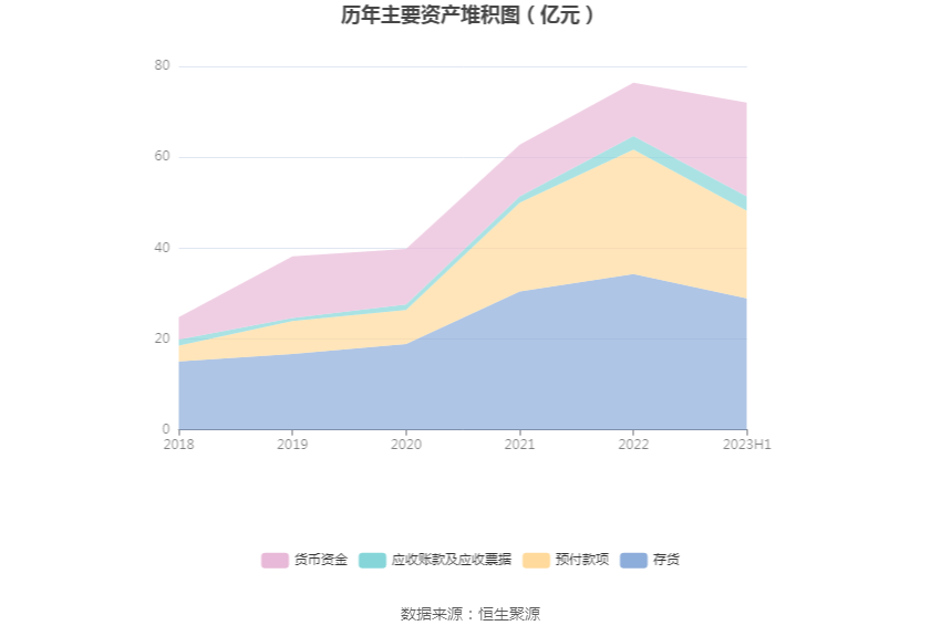 资产重大变化方面,截至2023年二季度末,公司货币资金余额较上年末增加75.09%,占公司总资产比重上升12.04个百分点;预付款项较上年末减少29.71%,占公司总资产比重下降8.18个百分点;存货余额较上年末减少15.61%,占公司总资产比重下降4.16个百分点;应收账款较上年末增加5.20%,占公司总资产比重上升0.42个百分点。