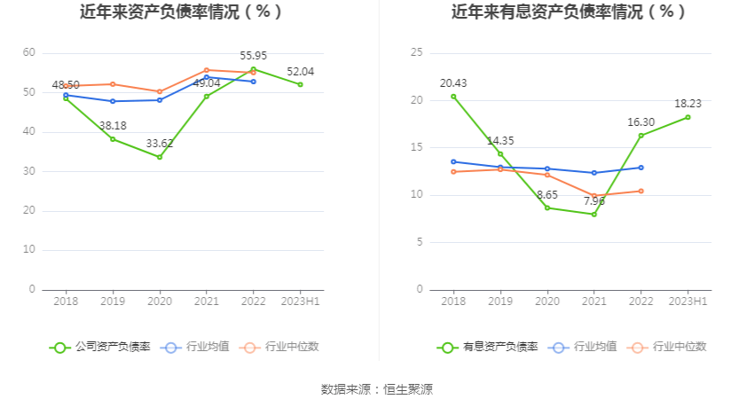 偿债能力方面,公司2023年二季度末资产负债率为52.04%,相比上年末减少3.91个百分点;有息资产负债率为18.23%,相比上年末增加1.93个百分点。