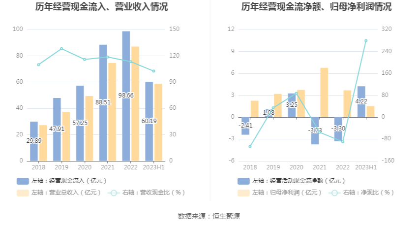 2023年上半年,公司营业收入现金比为102.59%,净现比为279.44%。