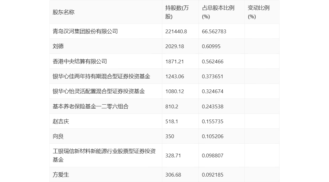 半年报显示,2023年上半年末的公司十大流通股东中,新进股东为向良、方爱生,取代了一季度末的兴全多维价值混合型证券投资基金、兴证全球合瑞混合型证券投资基金。在具体持股比例上,刘德、香港中央结算有限公司、赵吉庆持股有所上升。
