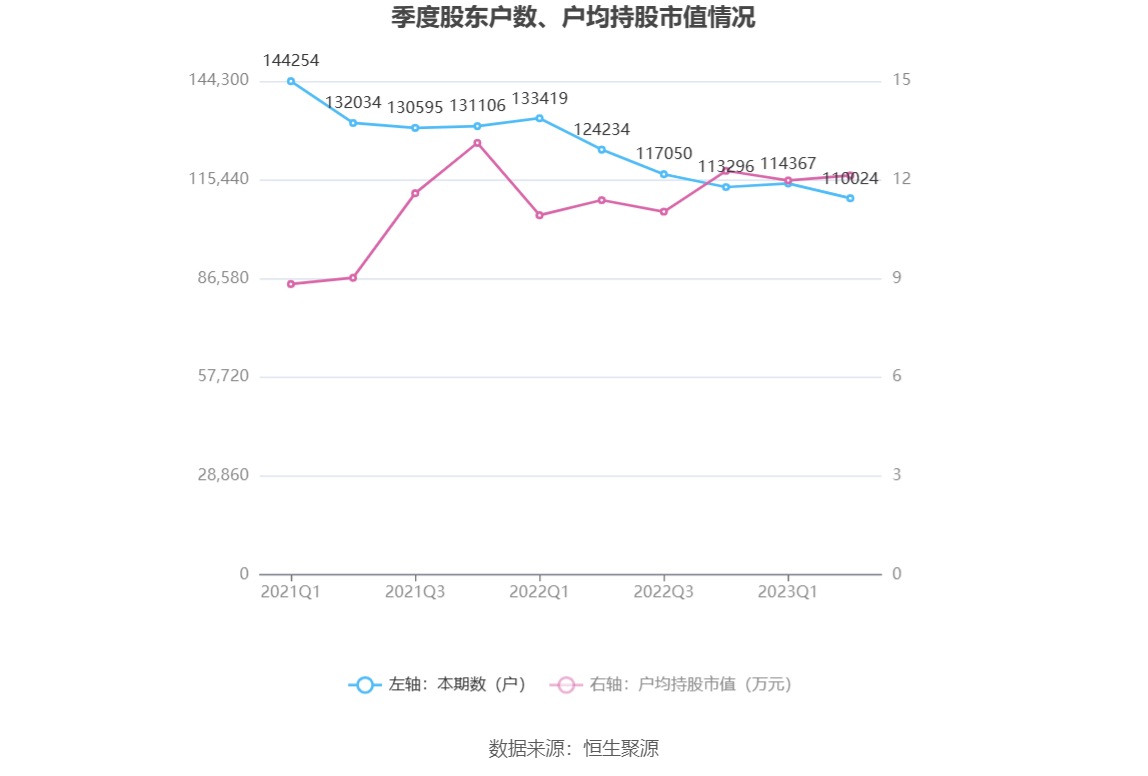 筹码集中度方面,截至2023年二季度末,公司股东总户数为11万户,较一季度末下降了4343户,降幅3.80%;户均持股市值由一季度末的11.98万元上升至12.13万元,增幅为1.25%。