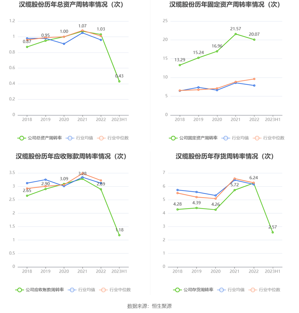 以8月30日收盘价计算,汉缆股份目前市盈率(TTM)约为17.85倍,市净率(LF)约为1.74倍,市销率(TTM)约为1.33倍。