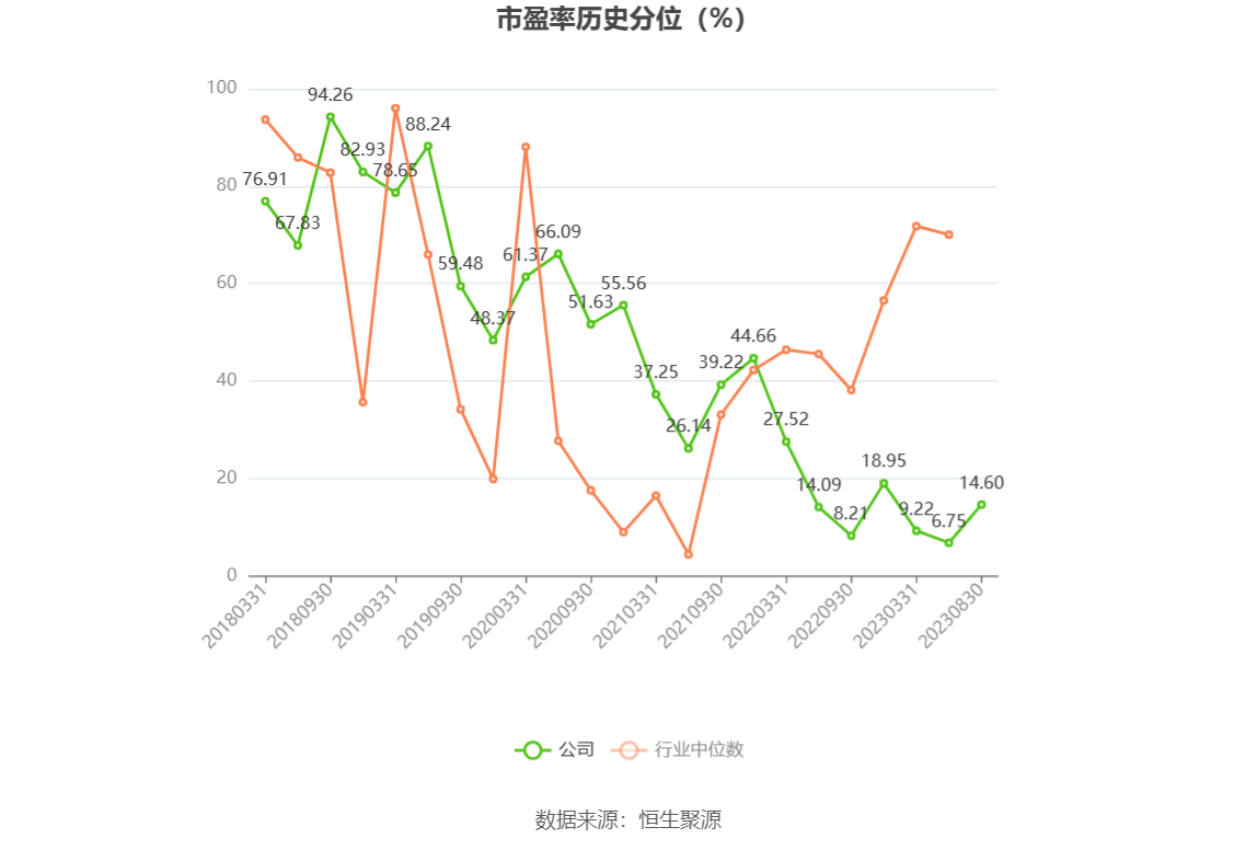 市盈率为负时,不显示当期分位数,会导致折线图中断。
