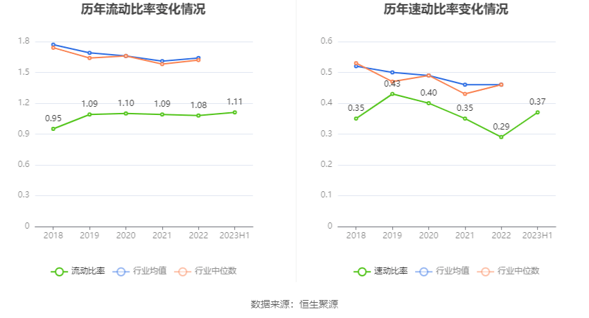 2023年上半年,公司流动比率为1.11,速动比率为0.37。
