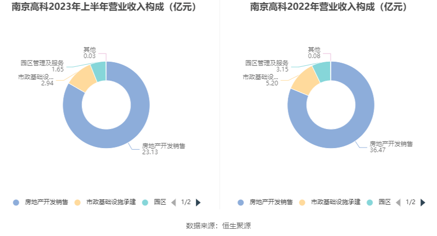 分产品看,房地产开发销售、市政基础设施承建、园区管理及服务2023年上半年毛利率分别为9.16%、11.45%、38.84%。