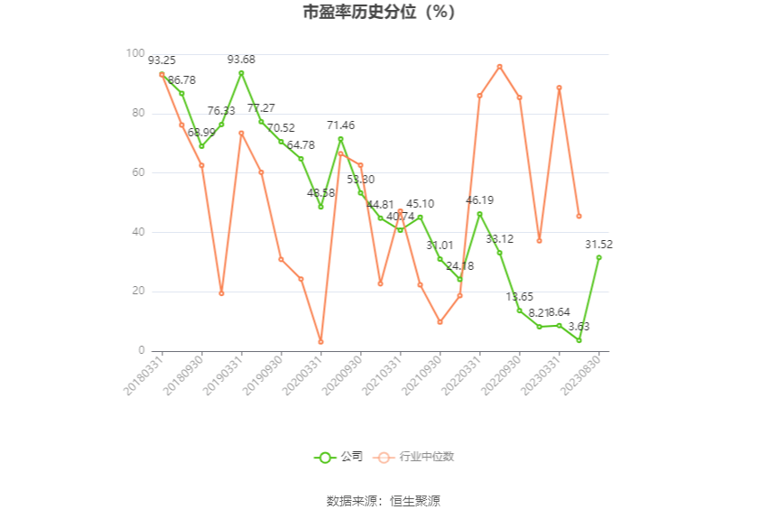 市盈率为负时,不显示当期分位数,会导致折线图中断。