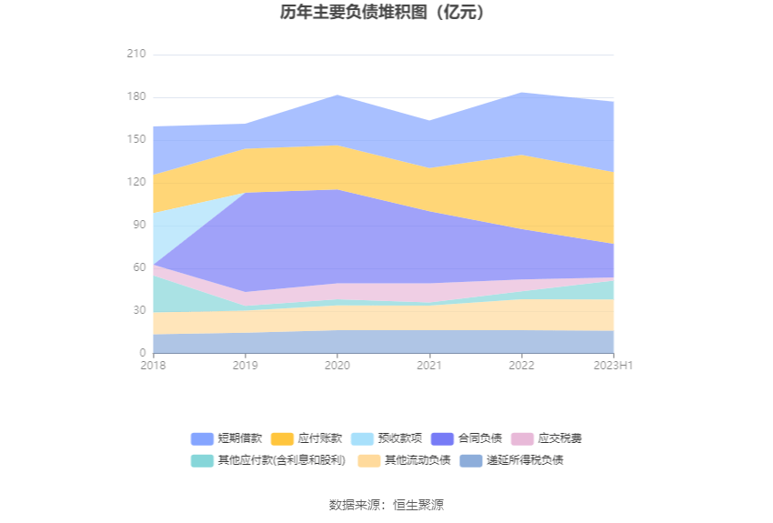 负债重大变化方面,截至2023年二季度末,公司合同负债较上年末减少33.03%,占公司总资产比重下降3.14个百分点;短期借款较上年末增加13.02%,占公司总资产比重上升1.48个百分点;一年内到期的非流动负债较上年末减少33.58%,占公司总资产比重下降0.54个百分点;应付账款较上年末减少3.54%,占公司总资产比重下降0.54个百分点。