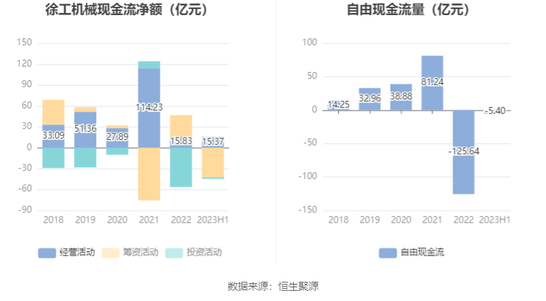 进一步统计发现,2023年上半年公司自由现金流为-5.40亿元,上年同期为140.73亿元。