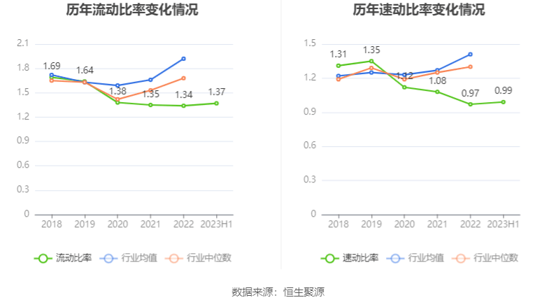 2023年上半年,公司流动比率为1.37,速动比率为0.99。