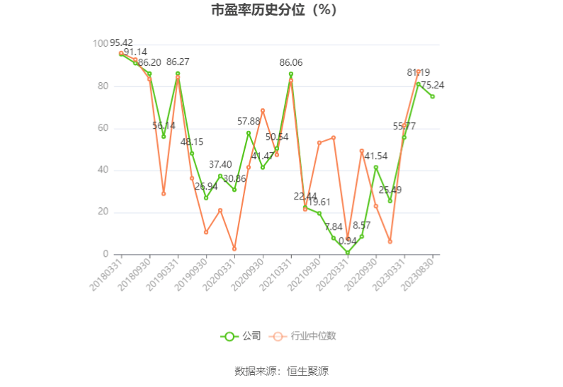 市盈率为负时,不显示当期分位数,会导致折线图中断。