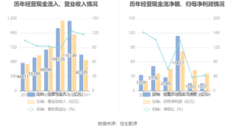 2023年上半年,公司营业收入现金比为117.26%,净现比为42.83%。