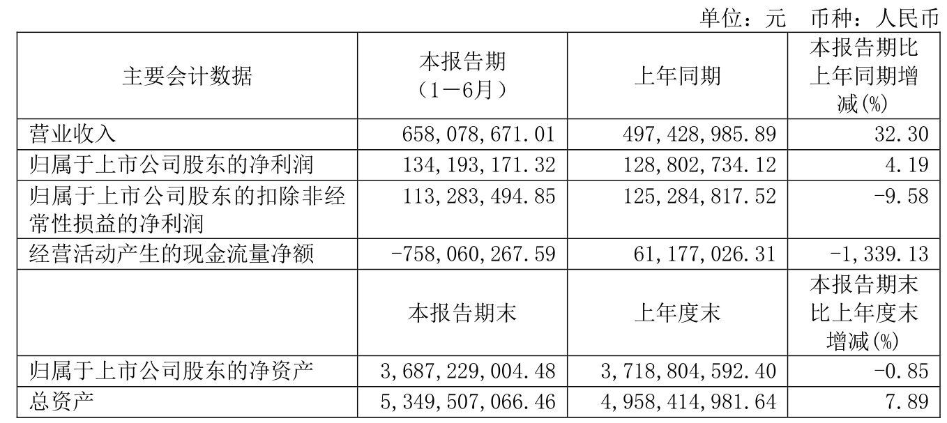 2023上半年,公司经营活动现金流净额为-7.58亿元,同比减少8.19亿元;筹资活动现金流净额6.87亿元,同比减少23.17亿元;投资活动现金流净额5.63亿元,上年同期为-7.09亿元。