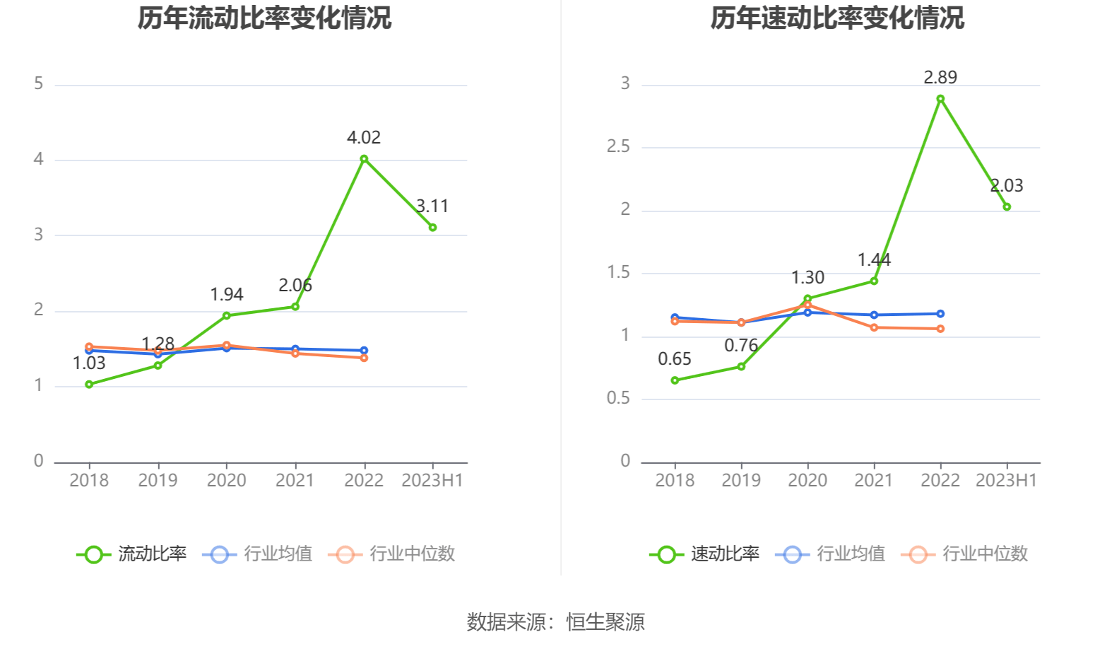 2023年上半年,公司流动比率为3.11,速动比率为2.03。