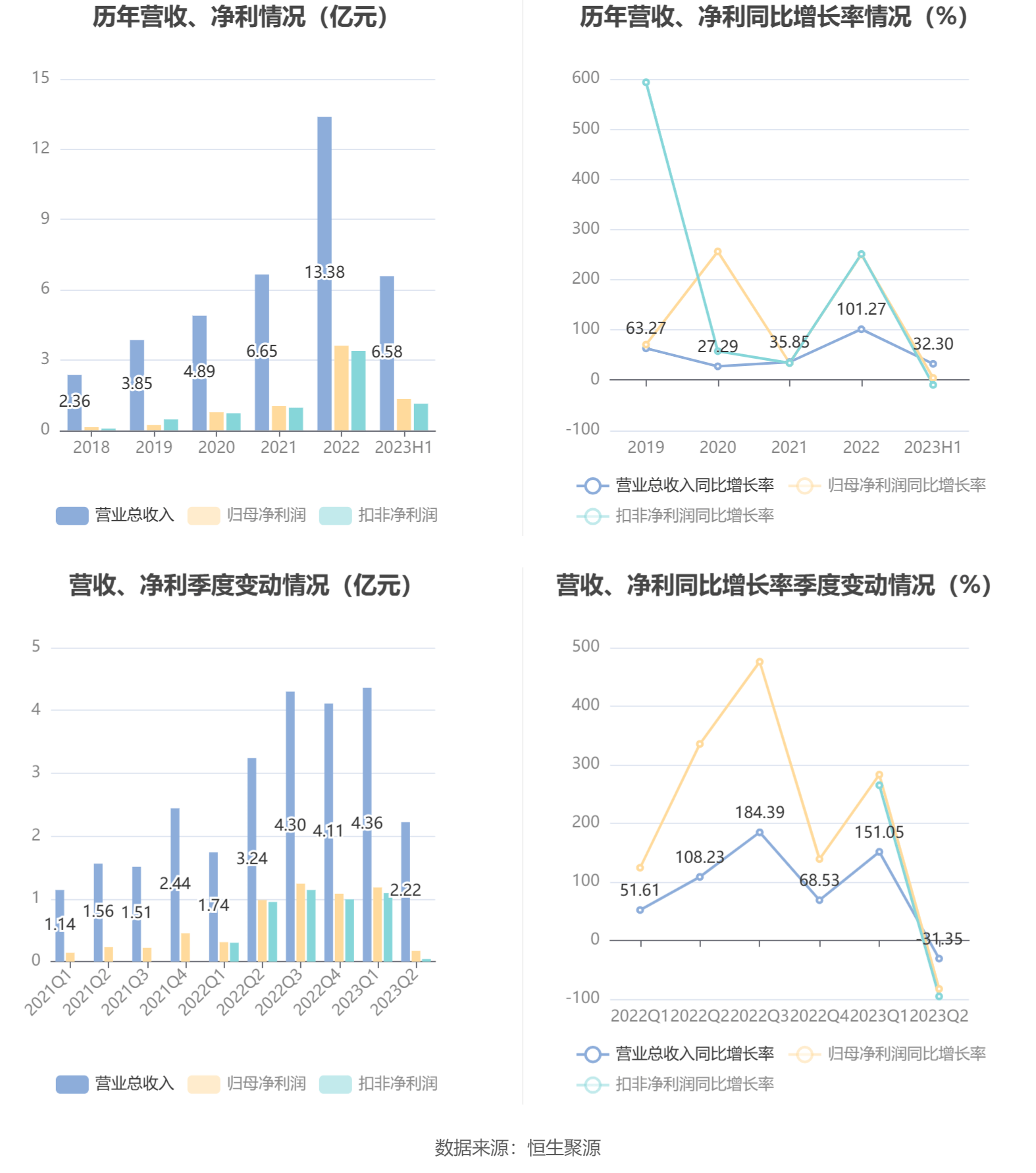 根据半年报,公司第二季度实现营业总收入2.22亿元,同比下降31.35%,环比下降48.97%;归母净利润1655.66万元,同比下降83.12%,环比下降85.93%;扣非净利润395.56万元,同比下降95.85%,环比下降96.38%。