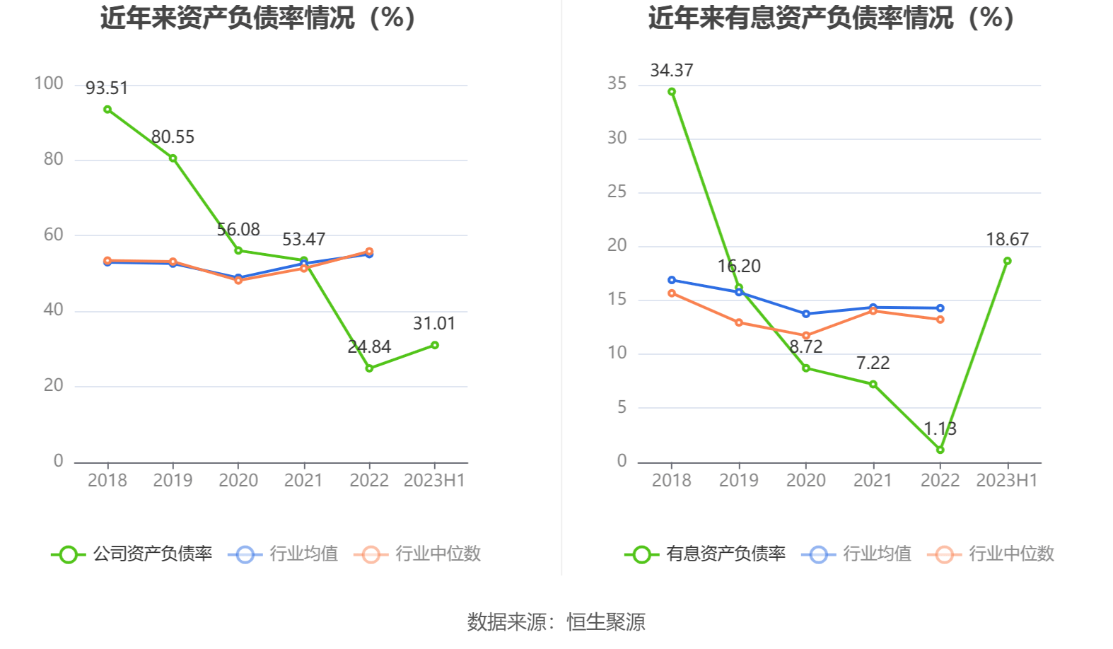 偿债能力方面,公司2023年二季度末资产负债率为31.01%,相比上年末增加6.17个百分点;有息资产负债率为18.67%,相比上年末增加17.54个百分点。