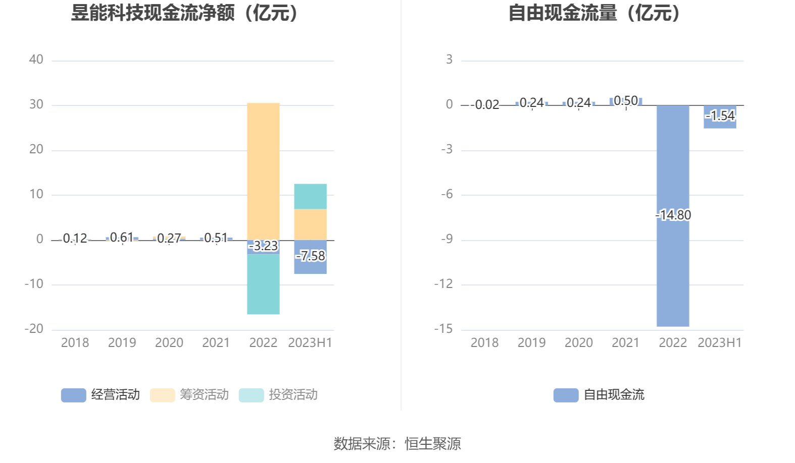 进一步统计发现,2023年上半年公司自由现金流为-1.54亿元,上年同期为-6.61亿元。