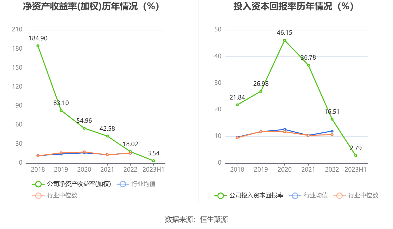 数据显示,2023年上半年公司加权平均净资产收益率为3.54%,较上年同期下降32.55个百分点;公司2023年上半年投入资本回报率为2.79%,较上年同期下降3.73个百分点。