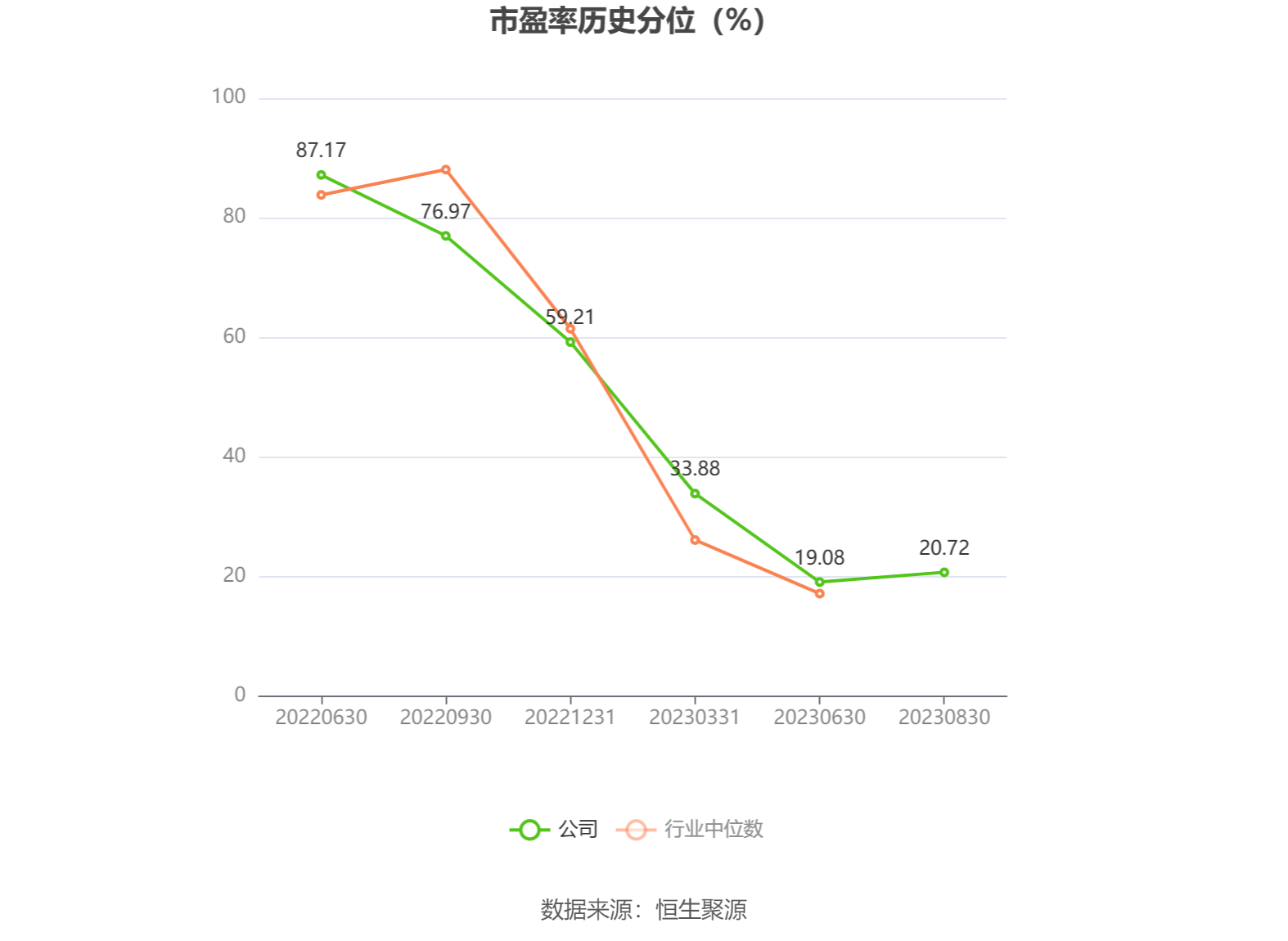 市盈率为负时,不显示当期分位数,会导致折线图中断。