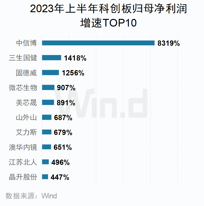 科创板方面,中信博净利润增速达8319%,位居第一。