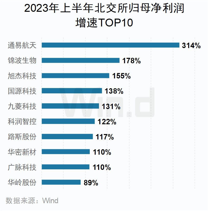 北交所企业中,通易航天以314%的净利润增速位列第一。
