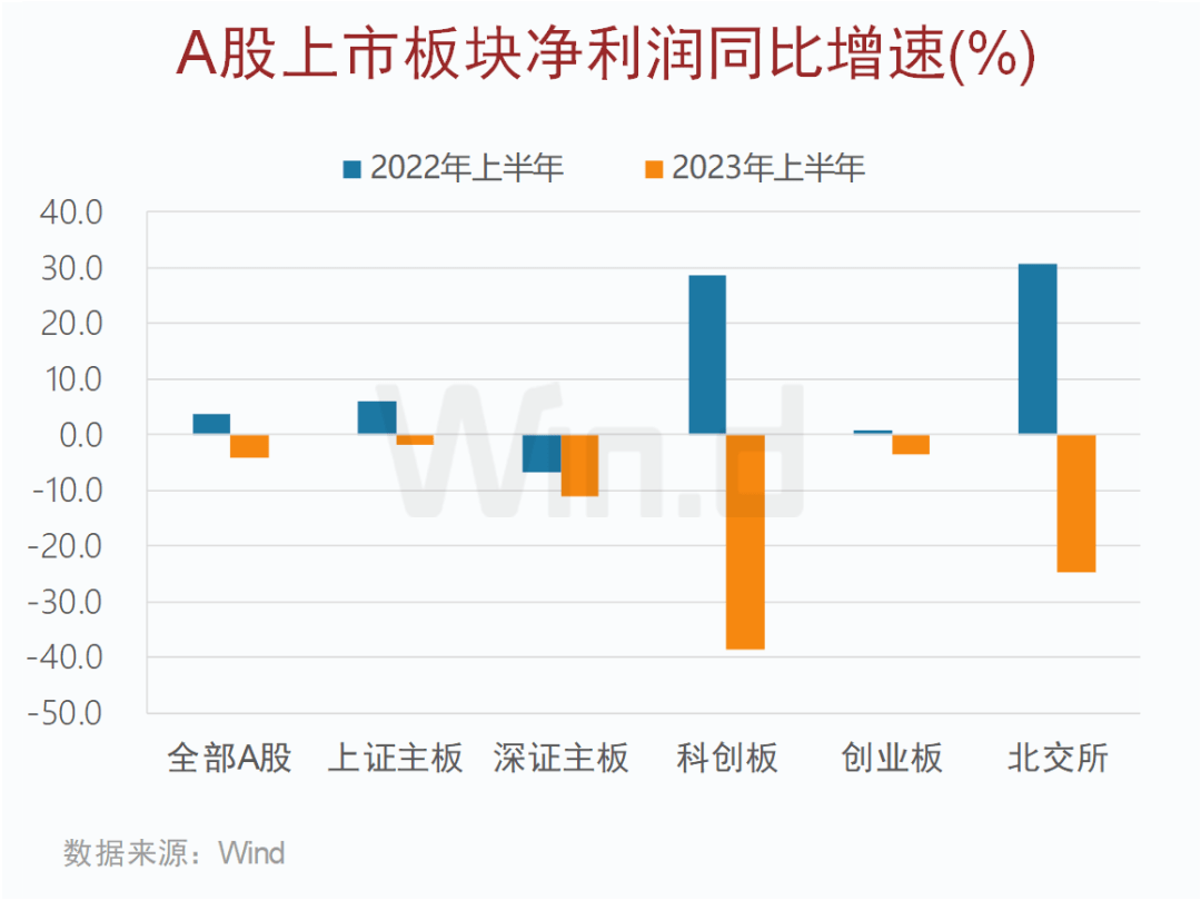 具体分板块来看,上半年创业板、科创板和北交所较主板营收同比增速更高,分别为10.05%、4.58%、4.43%、1.82%(上证主板)和3.18%(深证主板)。