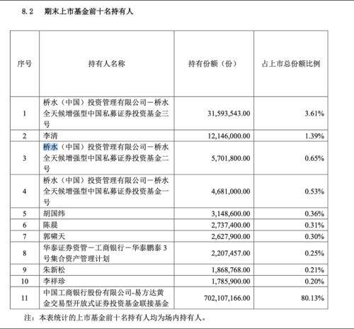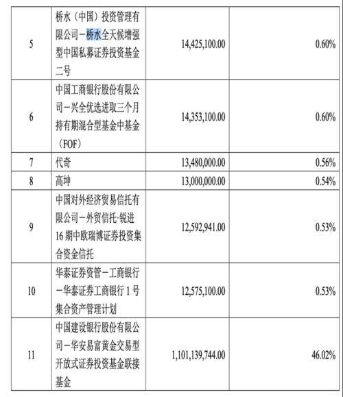 易方达黄金ETF前十大持有人,来源:基金中报。
