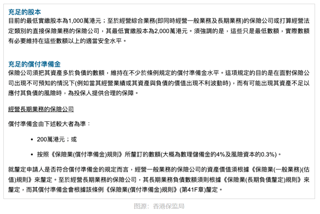 香港保险公司的监管规定明确,从事一般和长期保险业务的公司必须拥有最低股本额度为2,000万港元。然而,这只是最低标准,实际上,保险公司需要保持比这个数字更高的适当安全储备水平,以确保资本充足。
