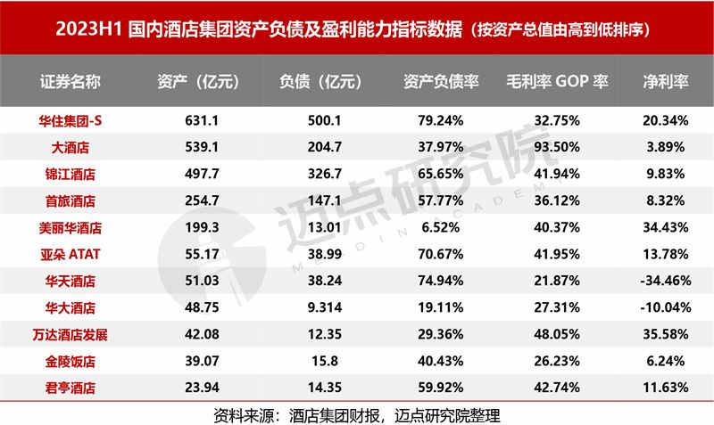 2.2023H1国内酒店集团负债和盈利情况:资产负债率均值49.23%,毛利率均值41.16%