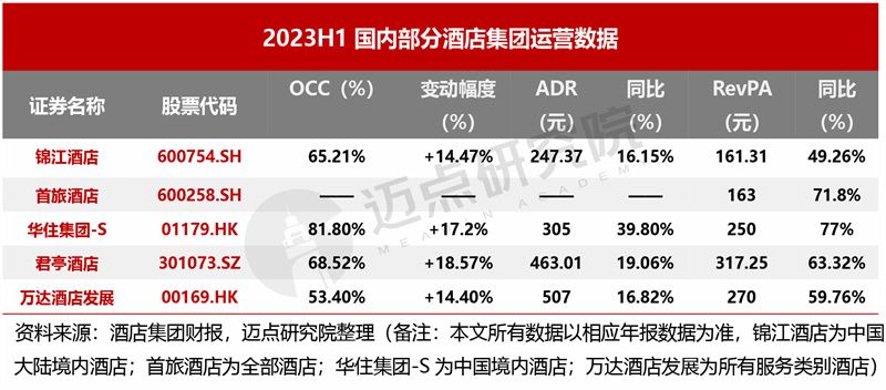 2023上半年,伴随国内旅游需求的恢复和增长,商务活动的日渐活跃,国内酒店行业经营逐步恢复正向的高速增长,多个旅游城市出现“一房难求”、“平均房价飙升”的现象。作为国内酒店产品供给核心主体的各主要酒店集团,上半年各项经营指标增长显著。