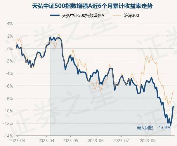 8月30日,天弘中证500指数增强A最新单位净值为1.1355元,累计净值为1.1355元,较前一交易日上涨0.05%。历史数据显示该基金近1个月下跌3.69%,近3个月下跌5.52%,近6个月下跌9.28%,近1年下跌11.57%。该基金近6个月的累计收益率走势如下图: