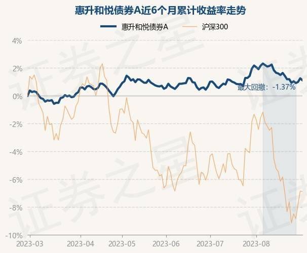 8月30日,惠升和悦债券A最新单位净值为1.0179元,累计净值为1.6001元,较前一交易日下跌0.14%。历史数据显示该基金近1个月下跌0.8%,近3个月上涨0.41%,近6个月上涨1.15%,近1年下跌1.8%。该基金近6个月的累计收益率走势如下图: