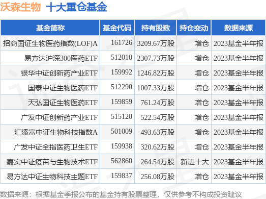 重仓沃森生物的前十大公募基金请见下表: