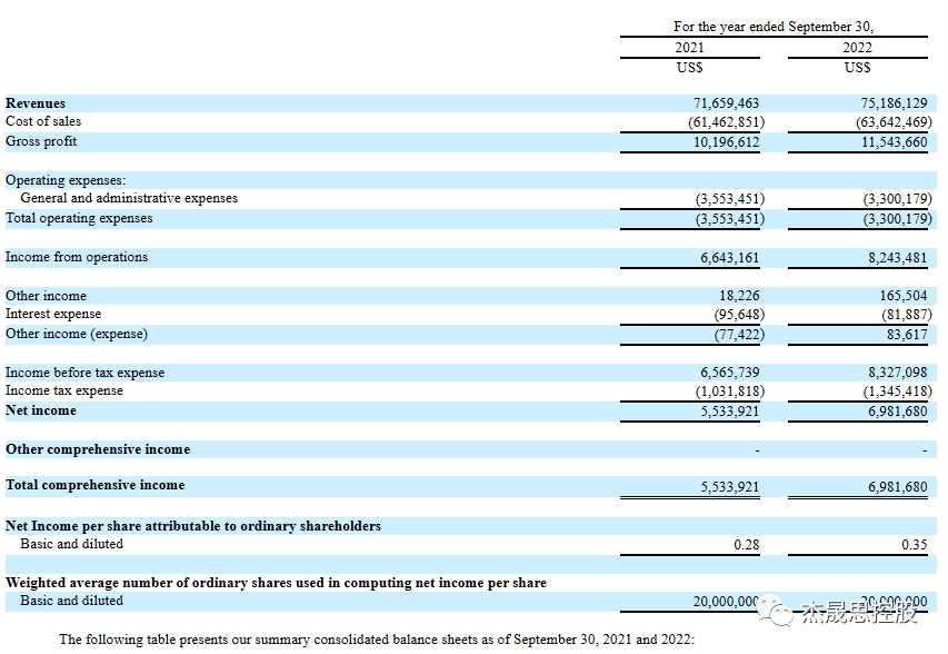 根据招股说明书披露信息,2021-2022财年(截至9月30日),GVH的营收分别为1199.33万美元和1944.42万美元,净利润分别为56.48万美元和81.02万美元。