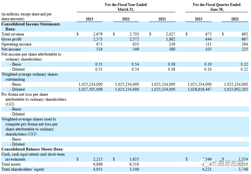 根据招股说明书披露信息,2021财年至2023财年,Arm年收入分别为20.27亿美元、27.03亿美元、26.79亿美元;净利润分别为3.88亿美元、5.49亿美元、5.24亿美元。自成立以来,Arm芯片出货量累计超过2500亿颗,拥有超过1500万名软件开发者。