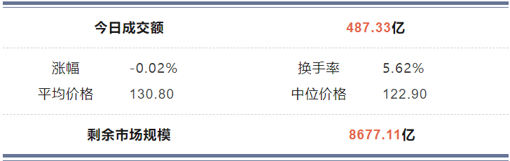 2023年8月31日转债市场成交额487.33亿元,换手率5.62%。
