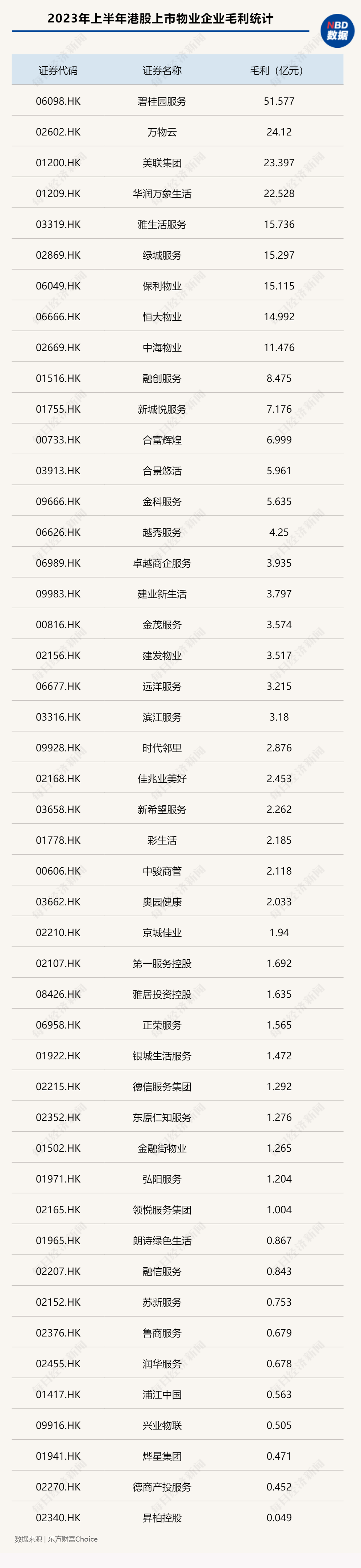 据中信证券的研报,2023年中期,样本物业企业(市值大于100亿港元)加权毛利率16.5%,相比去年同期增加0.28%;净利率提升0.4个百分点到7.3%;净利润增速24.6%,增速比去年同期提升13.7个百分点,大于收入端17.8%的增速。