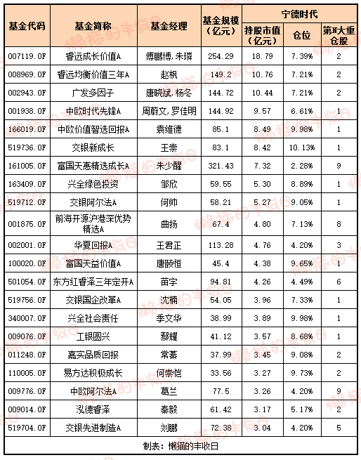 除了谢治宇,其他持有较多宁德时代的非新能源明星基金经理还有这几位: