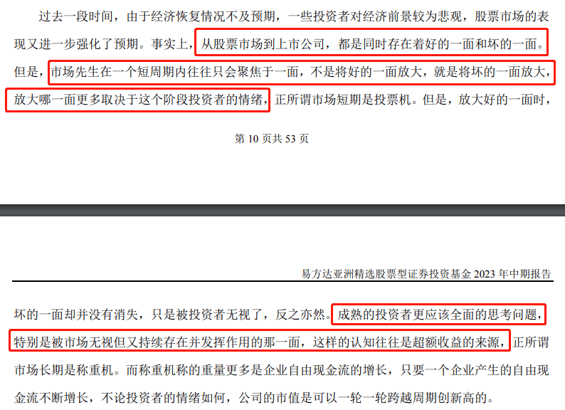 半年报中,他说: