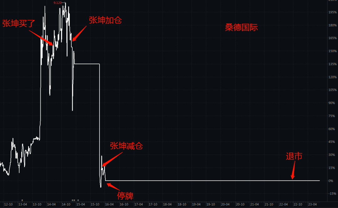 2014年下半年,张坤买了这只股票35万股,并于2015年上半年加仓到了70万股,但加仓没多久,这只股票就停牌了,直到2016年上半年才复牌,张坤减仓到30万股,然后又停牌,2022年9月退市,张坤也一直把这30万股拿到了现在。
