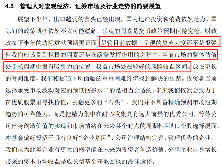 半年报中,周海栋说了自己对下半年行情的判断: