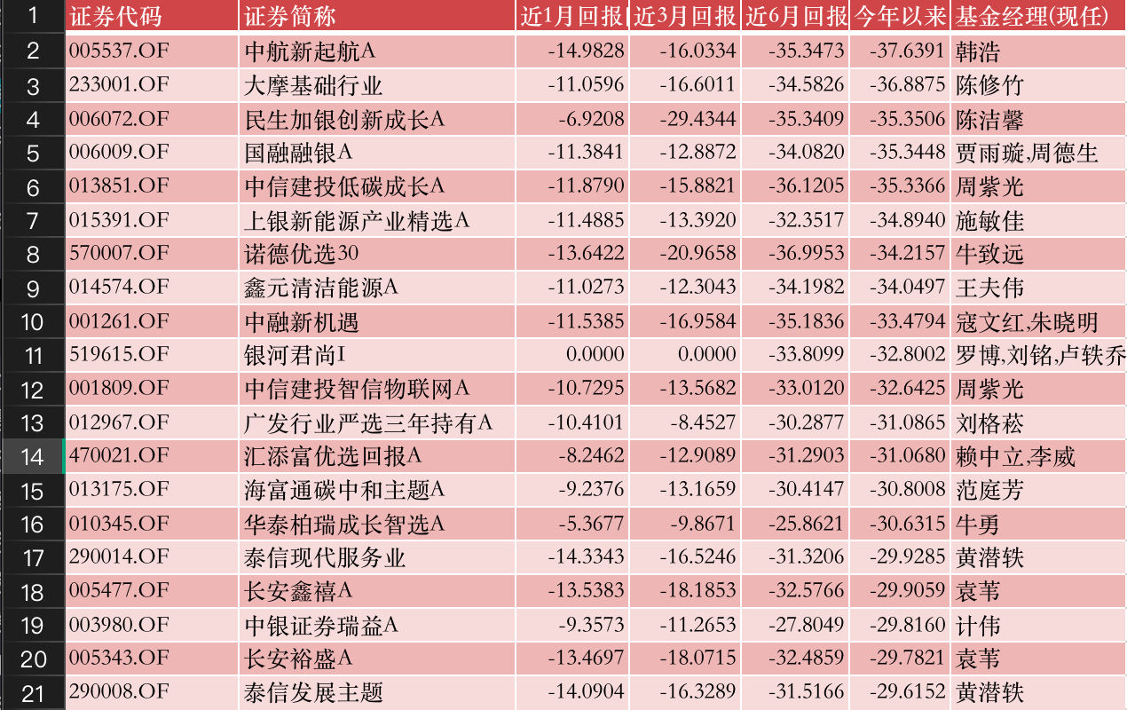 今天,我们先不看“牛基”,而是看看“弱基”TOP20榜,算是对大家投资生涯的警醒。