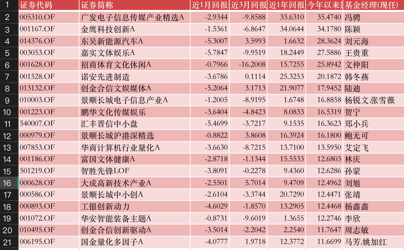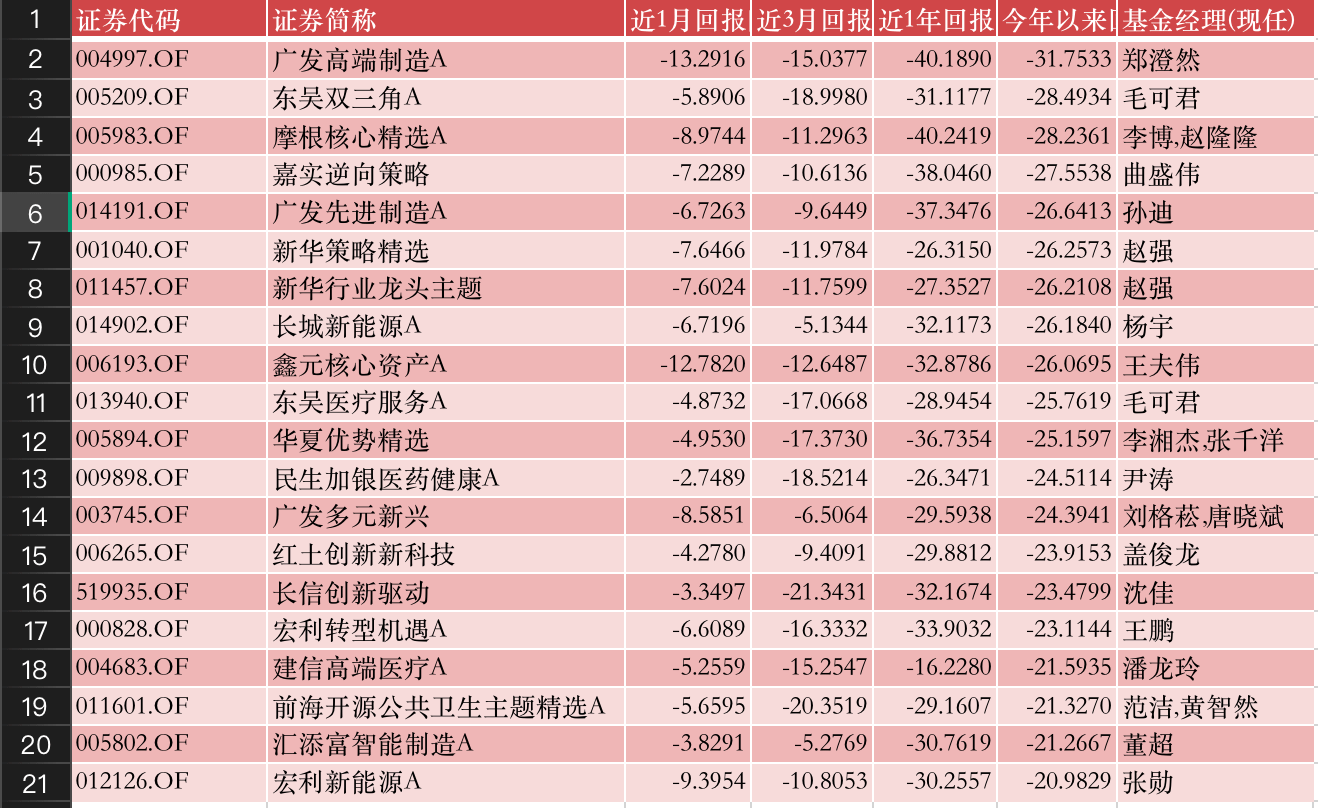股票“弱基”TOP20榜:广发高端制造亏损超30%