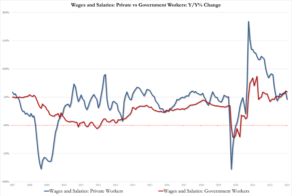 私营企业员工工资和薪金同比从5.9%下降到4.6%。