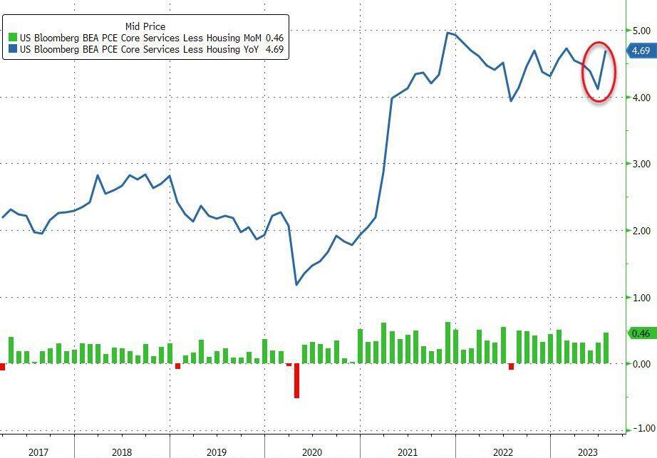 值得注意的是,更受关注的是美联储对不含住房的服务业通胀的看法,而对应的PCE物价指数显示,服务业通胀在很大程度上停留在高位。
