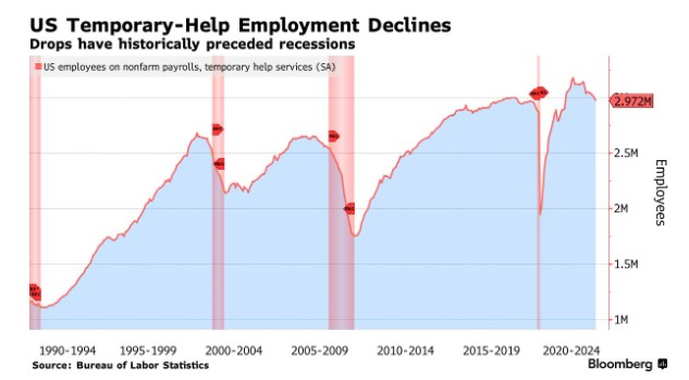 从历史上看,美国“临时支持服务”(Temporary-help)就业人数的变化通常预示着劳动力市场和经济的转折,而根据最新数据显示,该数字已连续六个月下降,这或许预示着未来经济将出现衰退。然而,一些业内资深人士对此却并不买账。